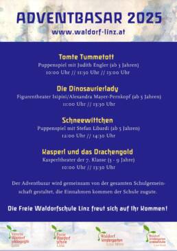 Am Samstag, den 29. November 2025, lädt die Freie Waldorfschule Linz von 9 bis 16 Uhr herzlich zum Adventbasar in der Baumbachstraße 11 ein.